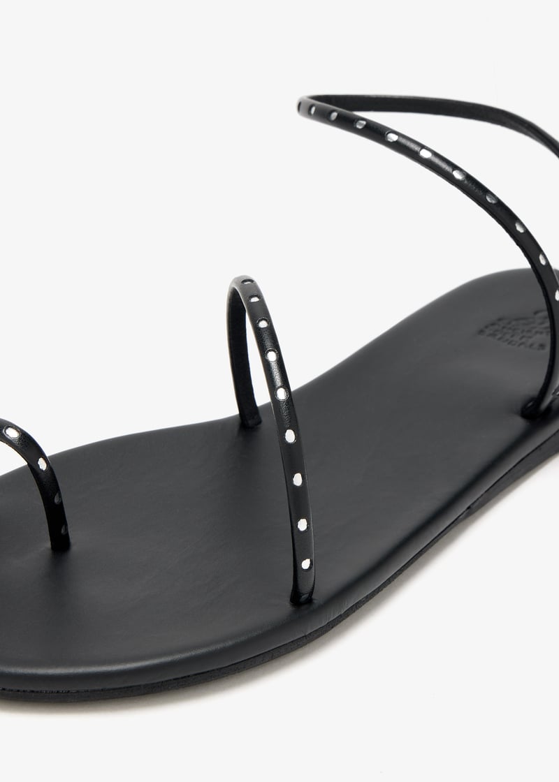 اكملي إطلالاتكِ الكاجوال بصندل آسترو من اينشنت غريك صندلز. يتميز بمقدمة مفتوحة مع أحزمة رفيعة مزحرفة تلتف حول القدم والكاحل بشكل أنيق، يكتمل التصميم بمقدمة مستديرة ونعل رفيع.