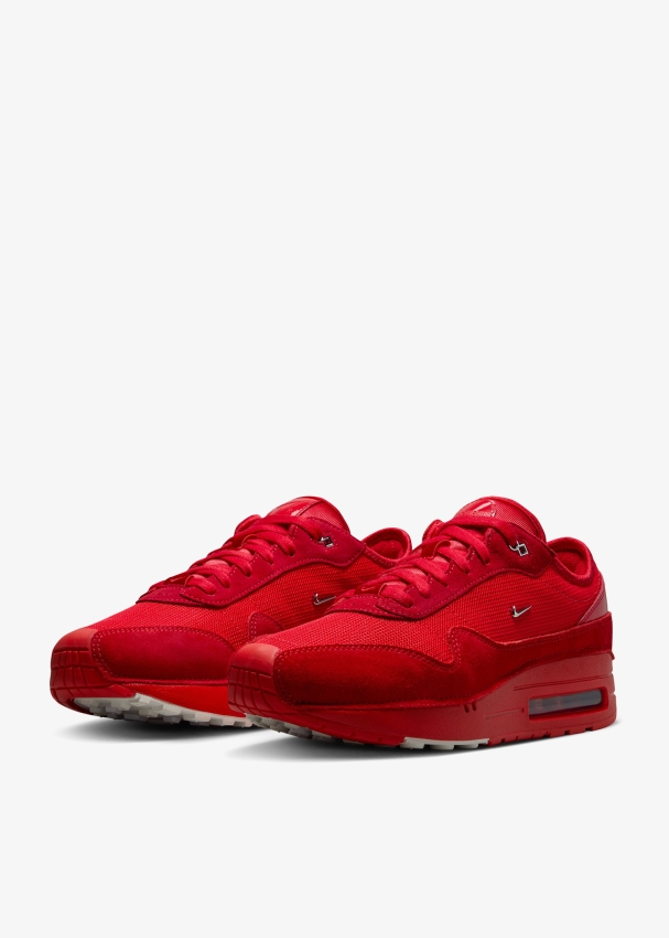 تجتمع نايك والعلامة الفرنسية الفاخرة جاكيموس مرة أخرى في تعاون جديد يتميز نسخة جديدة من سنيكرز إير ماكس 1 الأيقوني بوحي من مدينة باريس. يكرّم السنيكرز التصميم الأيقوني لسنيكرز إير ماكس 1، مع تفاصيل تشيد للمجموعات الأولى لدار جاكيموس كفتحات التهوية ذات الأشكال الغير متماثلة. يأتي السنيكرز مصنوعاً من خامات فاخرة مثل الشمواه والنايلون بألوان "يونيفيرستي ريد" و"ميتاليك سيلفر". يكتمل التصميم بشعارات نايك وجاكيموس، رباط إغلاق بطرف جلدي، بالإضافة إلى مفاتيح مستديرة ومربعة للمسة نهائية مميزة.