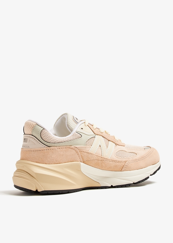 سيصبح سنيكرز ميد إن يو إس إيه 990 في6 من نيو بالانس الخيار المفضل لديك لكل يوم بفضل تصميمه الذي يجمع بين الأداء والأناقة. يتميز برقبة منخفضة وعدد أقل من التفاصيل مع إزالة السرج الموجود في منتصف القدم في الطراز السابق لتصميم طبقات من الكعب إلى الأمام أكثر انسيابية. يأتي بتوسيد مستوحى من الأداء مزود بتقنية "فيول سيل" الجديدة لاستعادة الطاقة.