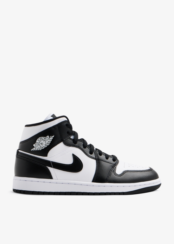 تُعيد نايك تقديم سنيكرز إير جوردان 1 ميد باللونين الأبيض والأسود مع الحفاظ على التصميم الكلاسيكي الشهير المستوحى من كرة السلة ليوفر الراحة الفائقة. يتميز ببنية من الجلد مع توسيد بتقنية "إير-سول" ورقبة مبطنة توفر الدعم ونعل مطاطي وثقوب على المقدمة.