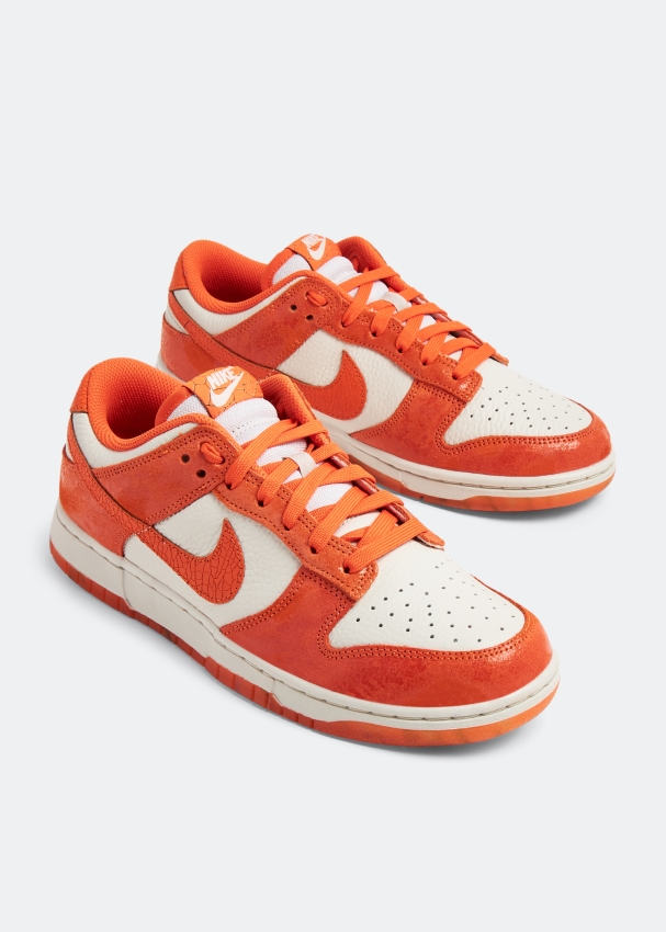 انعمي بإطلالة مستوحاة من أزياء الشارع تخطف الأنظار مع سنيكرز دانك لو من نايك. يتميز بتصميم بلون "كراكد أورينج" مع قاعدة من الجلد الحبيّبي باللون الأبيض، طبقات باللون البرتقالي اللامع، نعل مطاطي بلونين، ثقوب على المقدمة وملصق من القماش على اللسان.