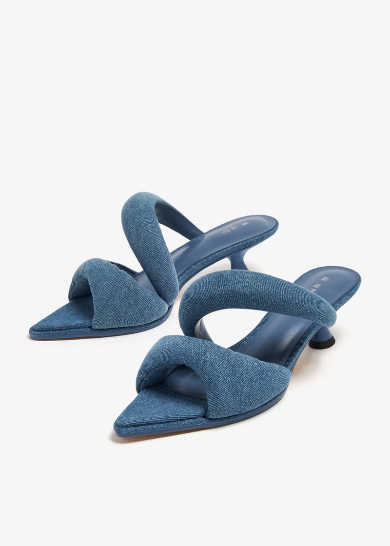 تبحثين عن حذاء جديد يرتقي بإطلالاتكِ في الموسم الجديد؟ إليكِ حذاء سارة المفتوح من الخلف من جي دبليو بي. مُصمم من الدنيم بمقدمة مدببة مع أحزمة مبطنة وكعب منخفض منحوت.