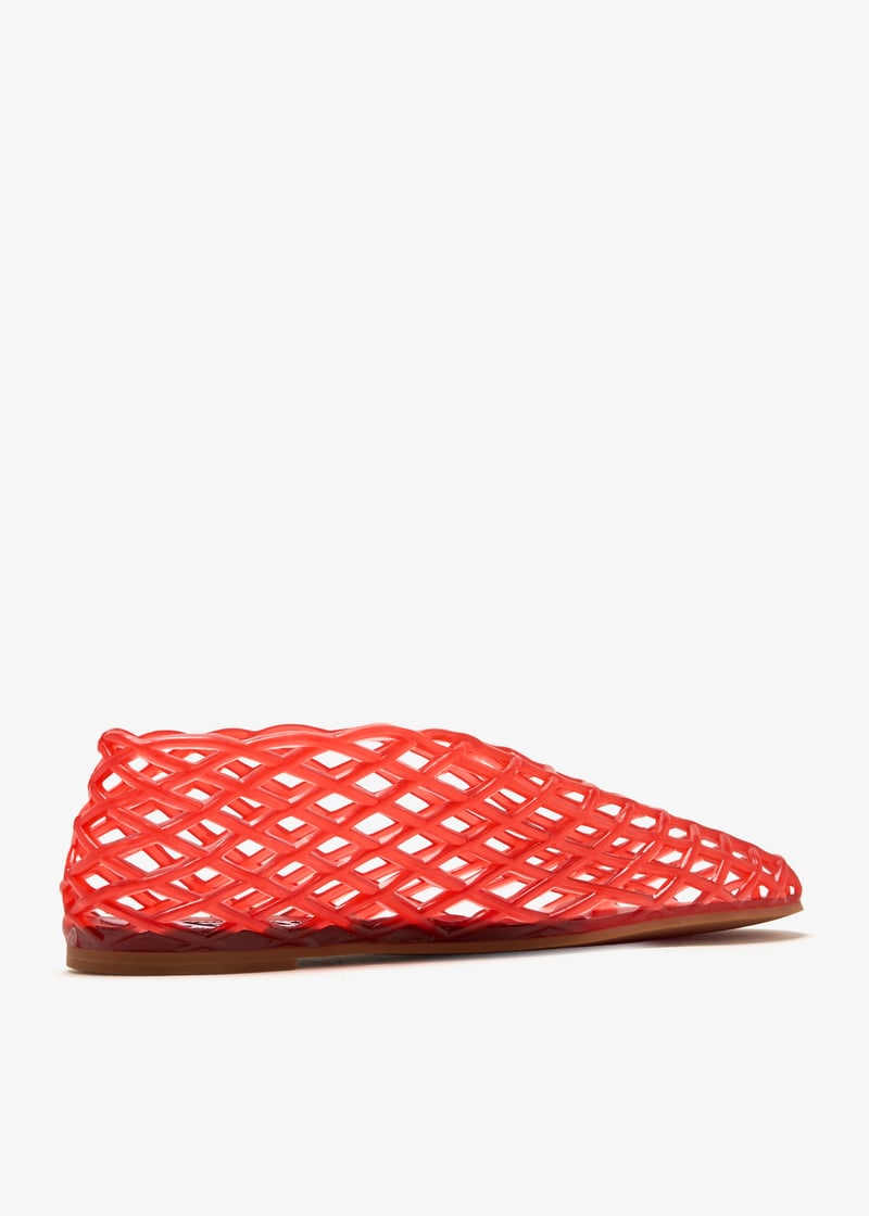 انغمسي في أجواء التسعينيات مع حذاء الباليرينا جيلي من سينسو. يأتي بجزء علوي مرن من البولي فاينل الحراري بتصميم شبكي، مما يجعلها سهلة الارتداء ومثالية لأيامكِ على الشاطئ.